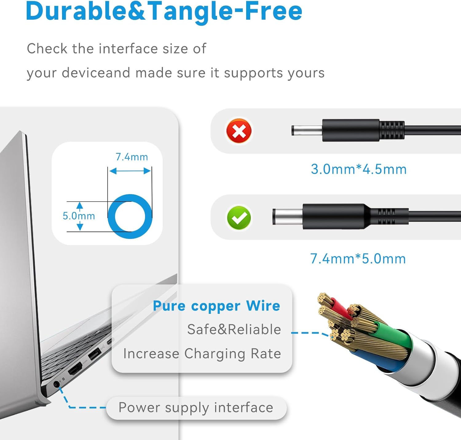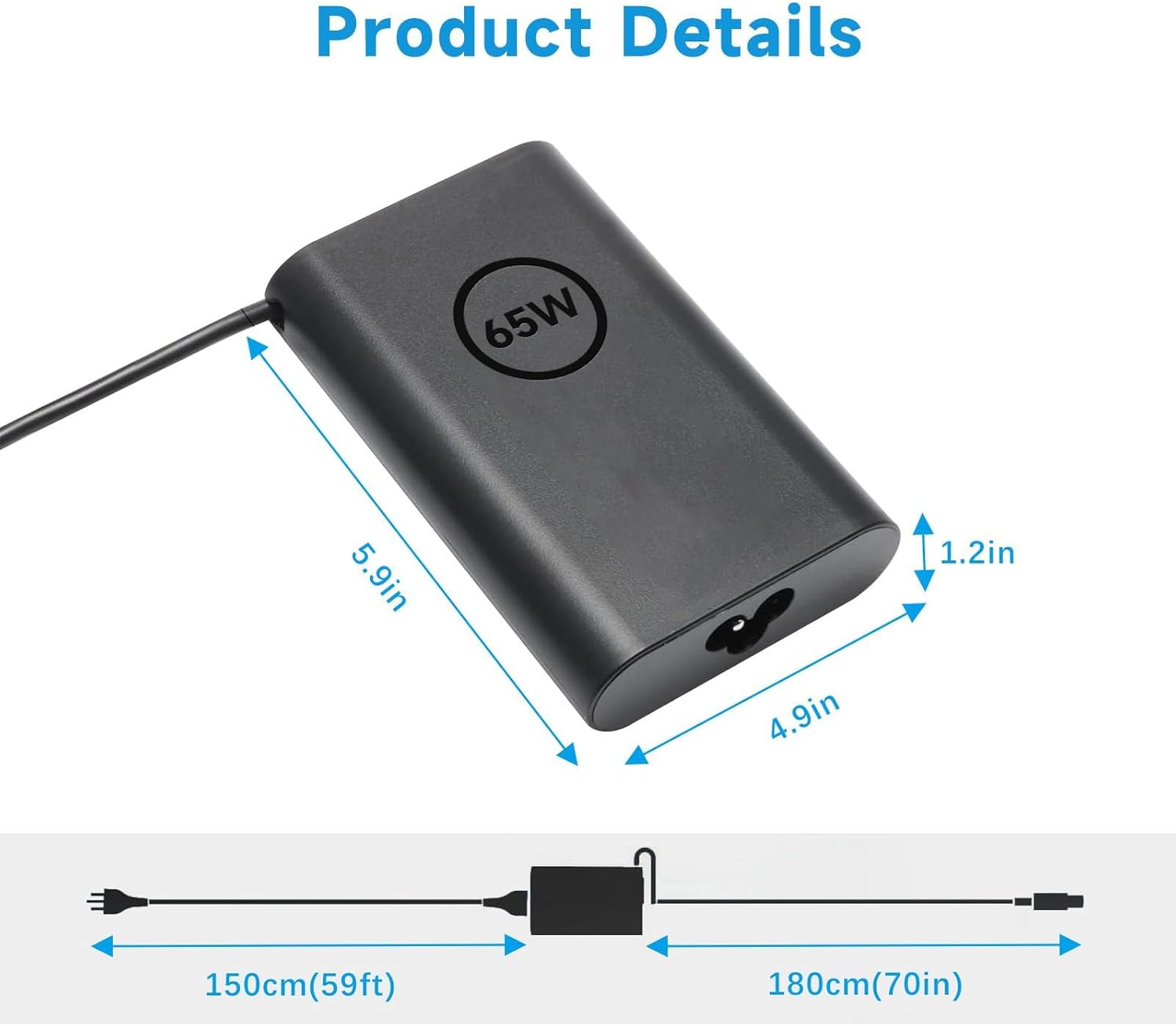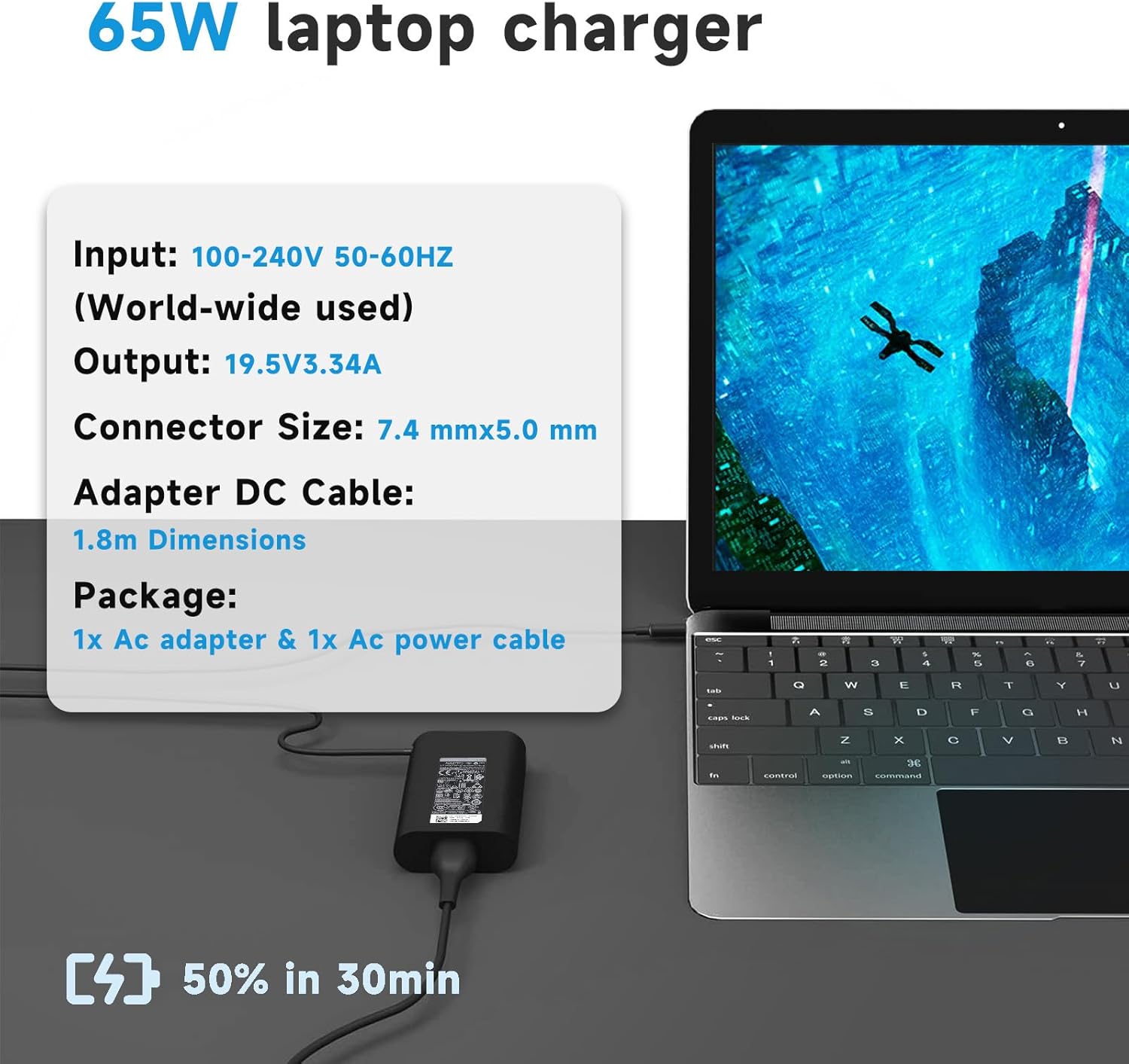 65W Laptop Charger Compatible with dell Latitude 5400 5480 5490 5590 5290 E5470,19.5V 3.34A AC Adapter Compatible with dell Latitude 7480 7490 E7250 7290 Laptop Charger LA65NM130 7.4 * 5.0mm